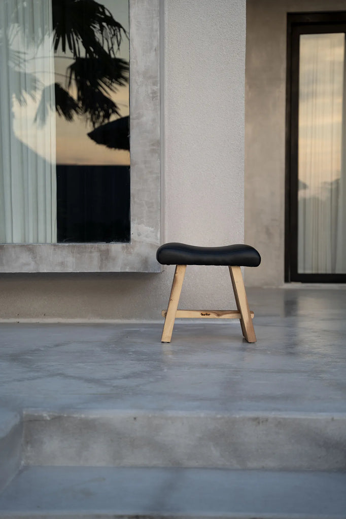 Ce tabouret simple et élégant en bois de suar brut et cuir mat est polyvalent. Parfait pour la cuisine, le salon, la chambre ou la salle de bain. Couleurs: naturel, noir. Dimensions: H 45cm, L 30cm, l 50cm. Intérieur et extérieur couvert. Matériaux: cuir, bois de suar.