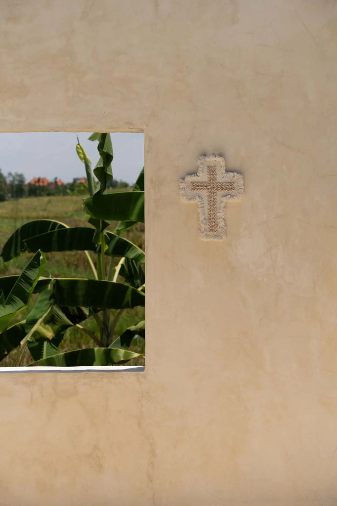 Vous n'avez pas besoin d'être croyant pour apprécier cette magnifique œuvre d'art faite à la main ! Ce croix, avec un crochet pour suspendre au mur, est en macramé de coton et orné de coquillages cauris qui lui donnent une teinte chaleureuse. Les franges de coton ajoutent une ambiance côtière. Livraison : Colis; Dimensions : L25 x H30 x P2 cm; Matériaux : Coton - Coquillage; Couleur : Blanc.