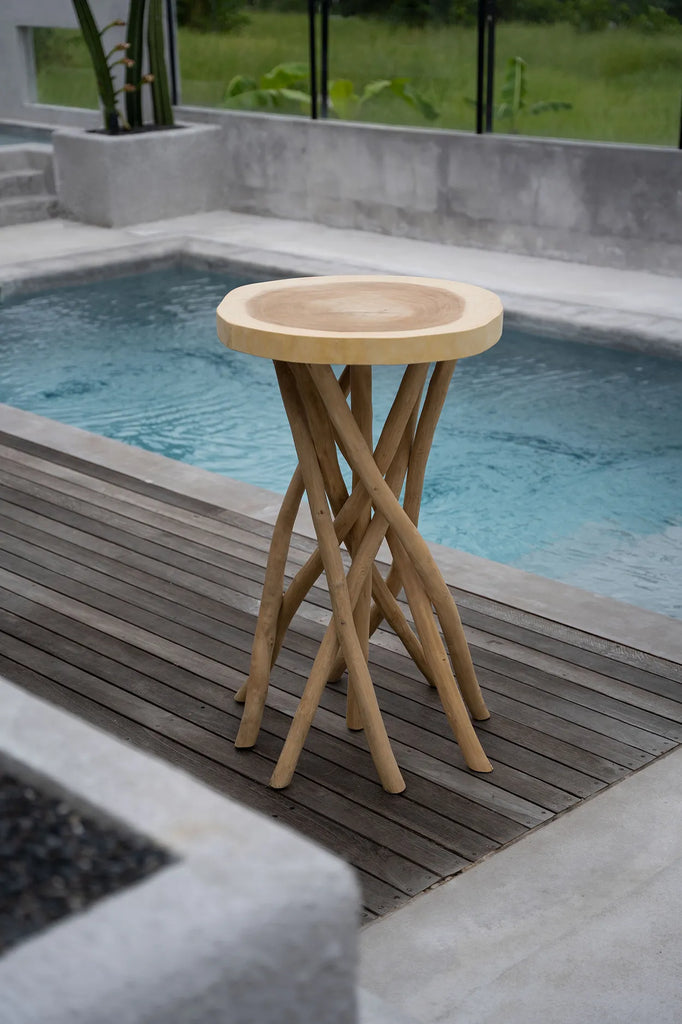 Fermez les yeux, imaginez une île tropicale, un bar, un cocktail tendance et ce superbe meuble pour poser votre verre. Transformez votre espace de vie en un bar de plage haut de gamme avec son design accrocheur en bois de teck et son plateau solide laissant apparaître les anneaux de l'arbre. Trois hauteurs disponibles pour des combinaisons parfaites.
