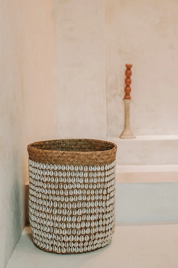 Ce panier en pandanus, orné de coquillages collectés sur les plages balinaises, est une véritable beauté. Découvrez les détails incroyables et l'amour investi dans ce panier artisanal - vous voudrez le laisser briller chez vous pour toujours! Utilisez-le pour ranger le linge, les jouets ou même une grande plante.