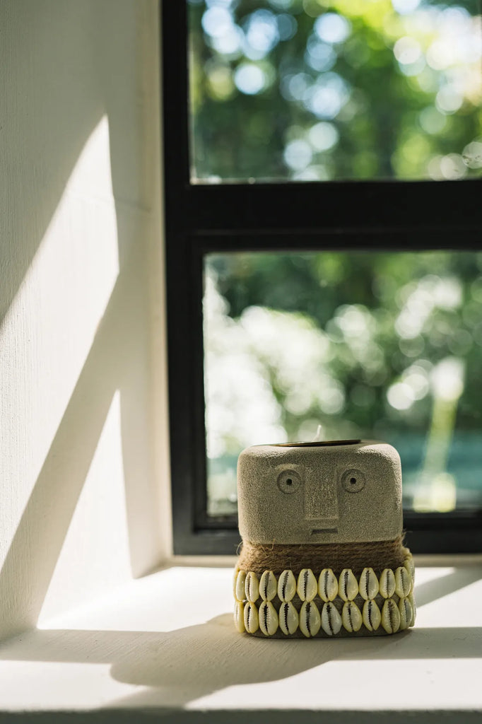 Image n°31 de notre collection Sumba Stone. Ces photophores en pierre simple sont sculptés à la main dans le grès par des artisans locaux de l'île indonésienne de Sumba. Ces pièces uniques apportent protection et guérison dans les villages traditionnels de Sumba. Parfait en solo ou en groupe pour créer un impact. Chaque pièce est unique et faite à la main.